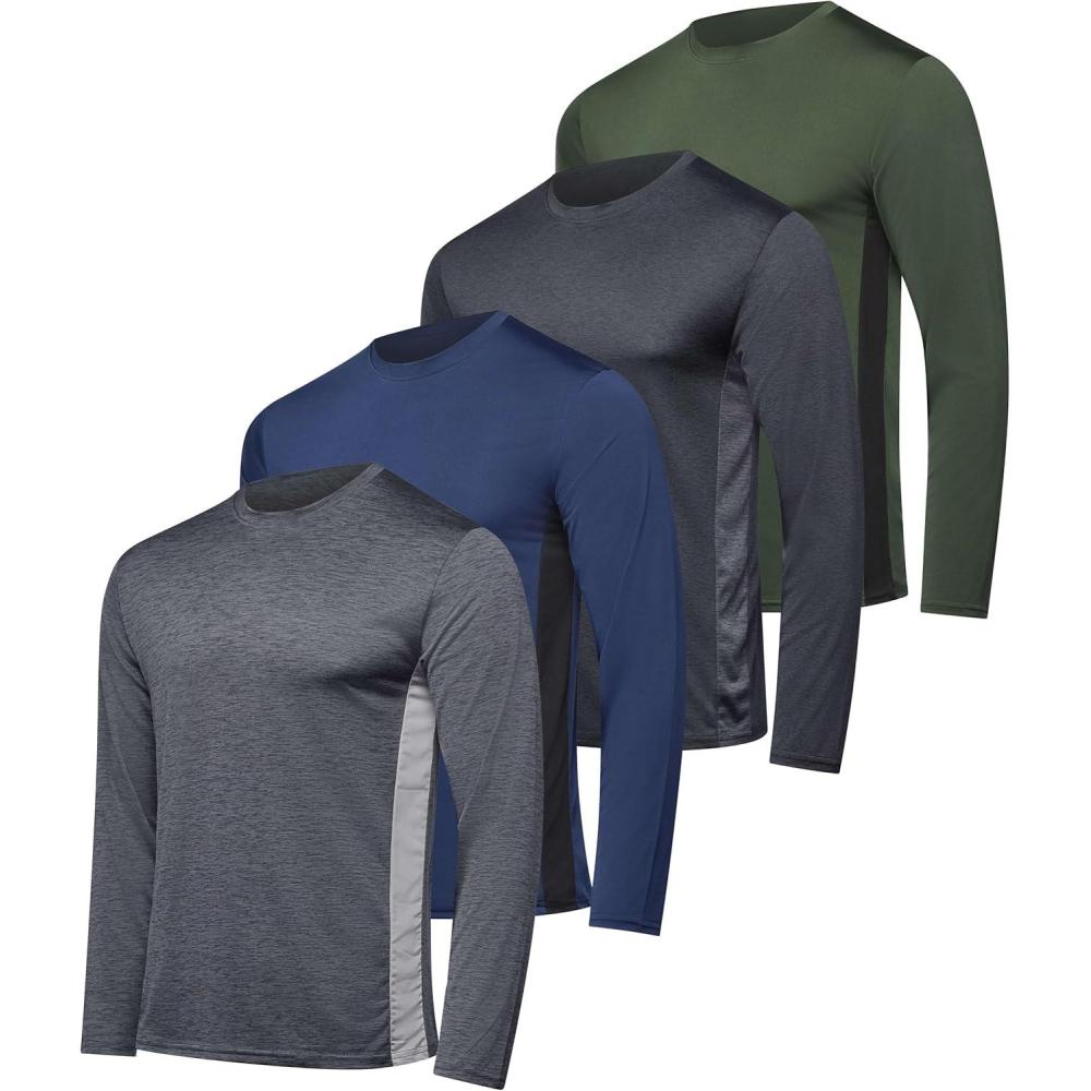 Real Essentials 4 Pack: Mens Long Sleeve Dry Fit T Shirts Hiking Fishing Workout Gym Work Sun UPF 50 Wicking Running Tee(Set K)