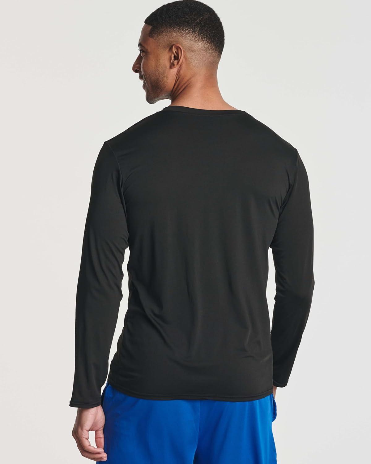 imageReal Essentials 4 Pack Mens Long Sleeve Dry Fit T Shirts Hiking Fishing Workout Gym Work Sun UPF 50 Wicking Running TeeSet L