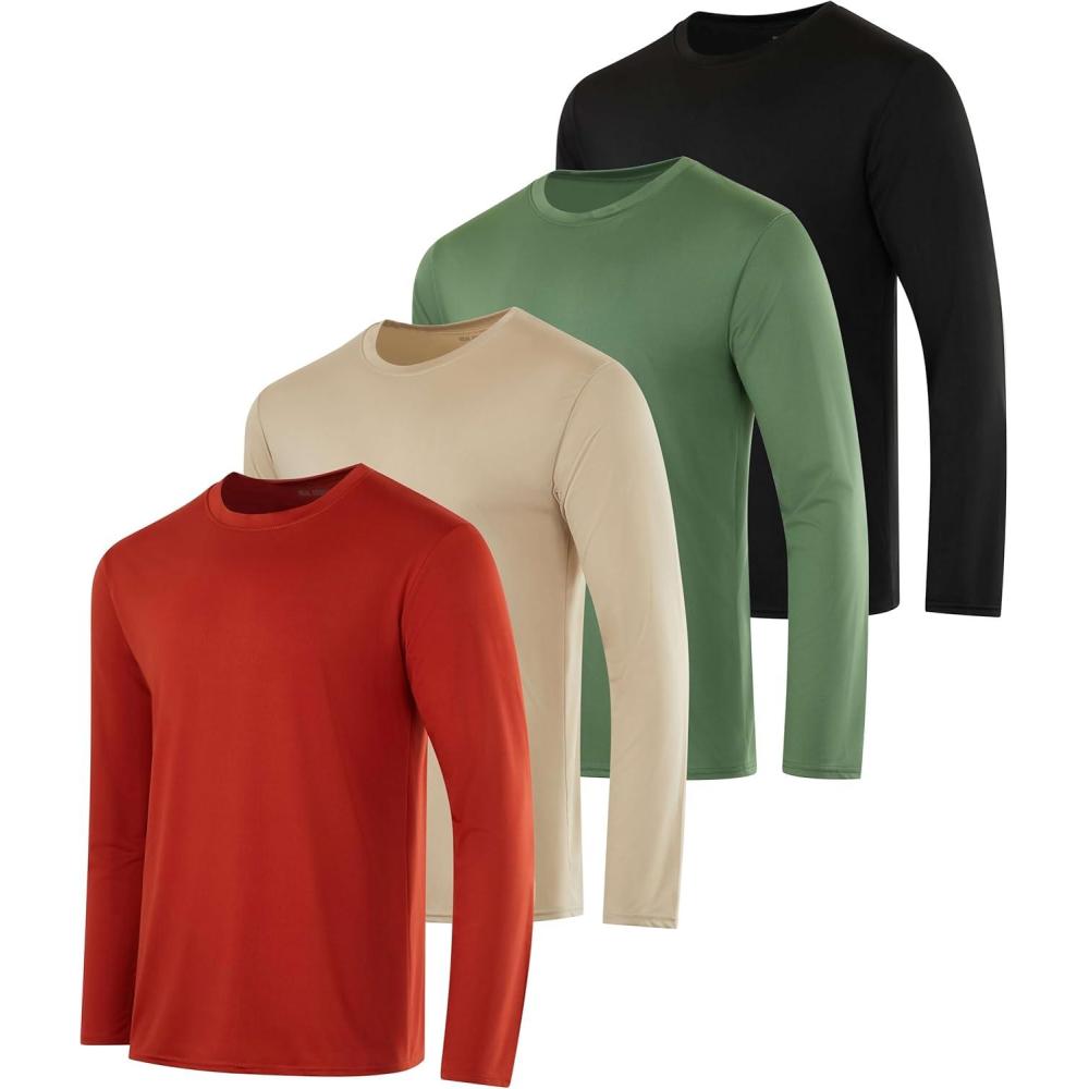 Real Essentials 4 Pack: Mens Long Sleeve Dry Fit T Shirts Hiking Fishing Workout Gym Work Sun UPF 50 Wicking Running Tee(Set M)