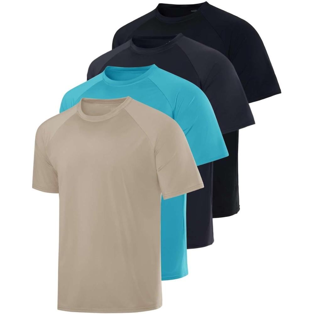 Real Essentials 4 Pack: Mens Short Sleeve Rash Guard Shirt Quick Dry UPF 50+ Sun Protection Swim (Available in Big & Tall)(Set 5)