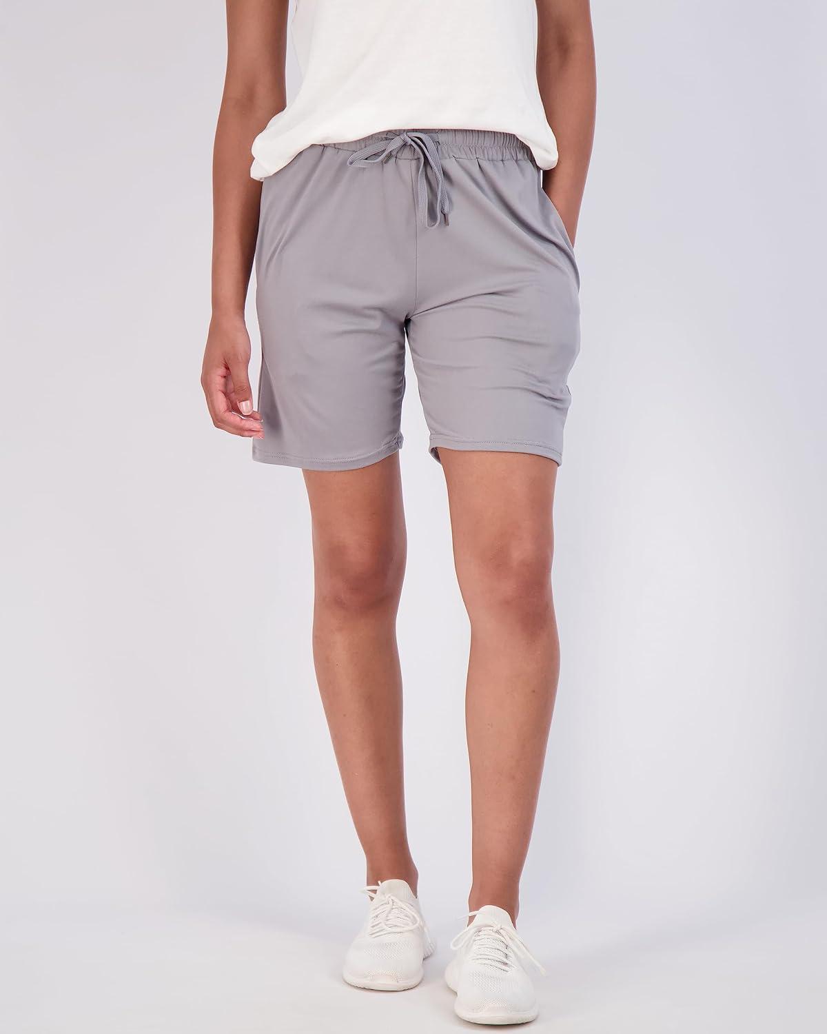 Real Essentials 4 Pack: Women’s 7″ Bermuda Long Casual Yoga Super-Soft Loose Comfy Shorts with Pockets (Available in Plus)(Set 9)