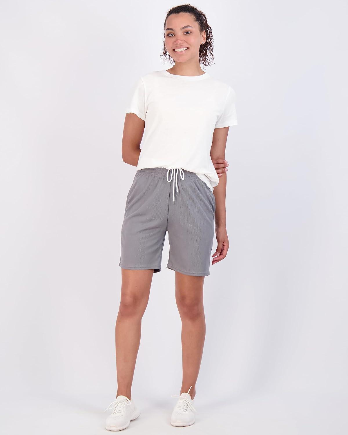 Real Essentials 4 Pack: Women’s 7″ Mesh Bermuda Athletic Shorts – Quick Dry Workout Running Pockets (Available in Plus Size)(Set 6)
