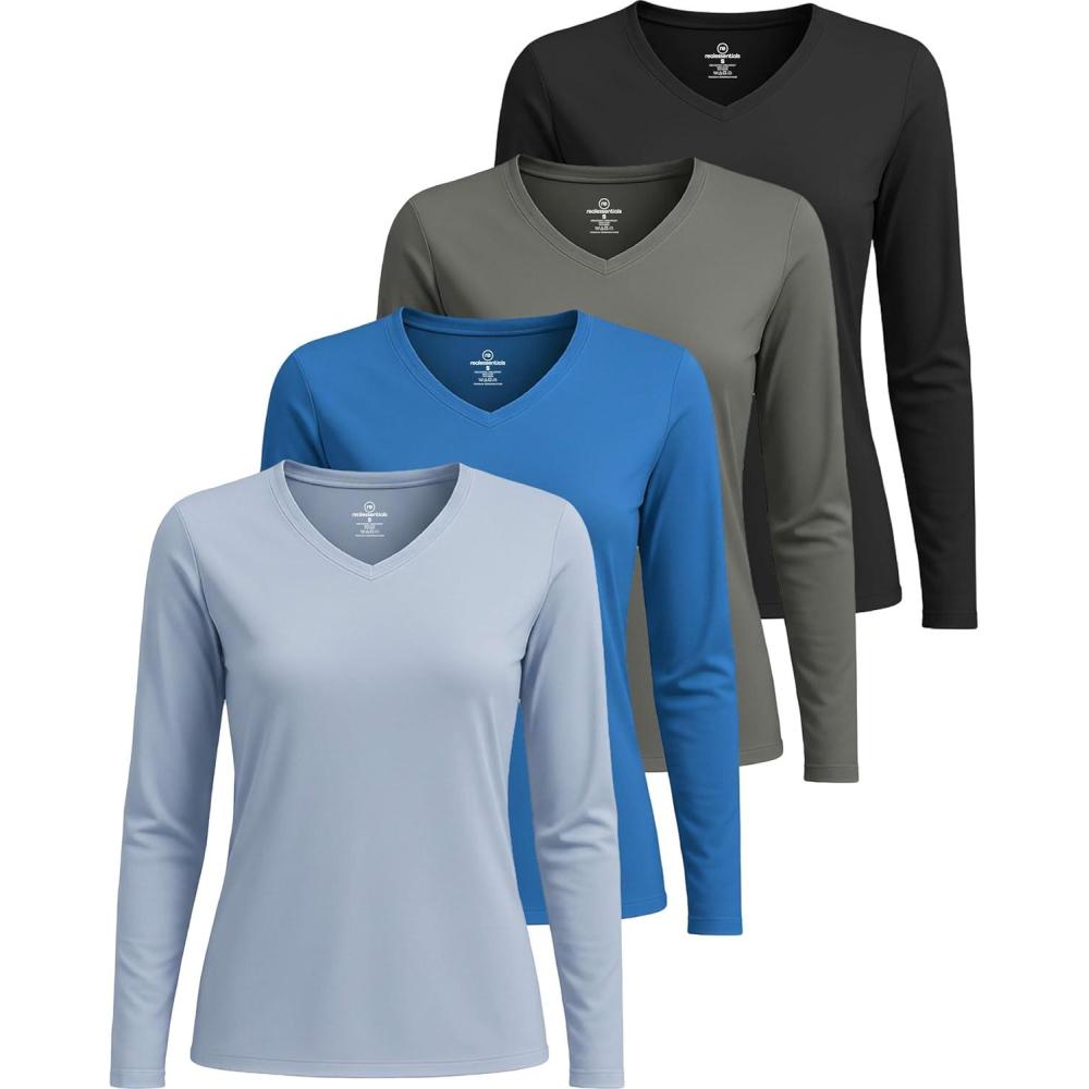 imageReal Essentials 4 Pack Womens Long Sleeve Dry Fit VNeck Athletic TShirt Workout Tops Active Gym Shirt PlusSet 8