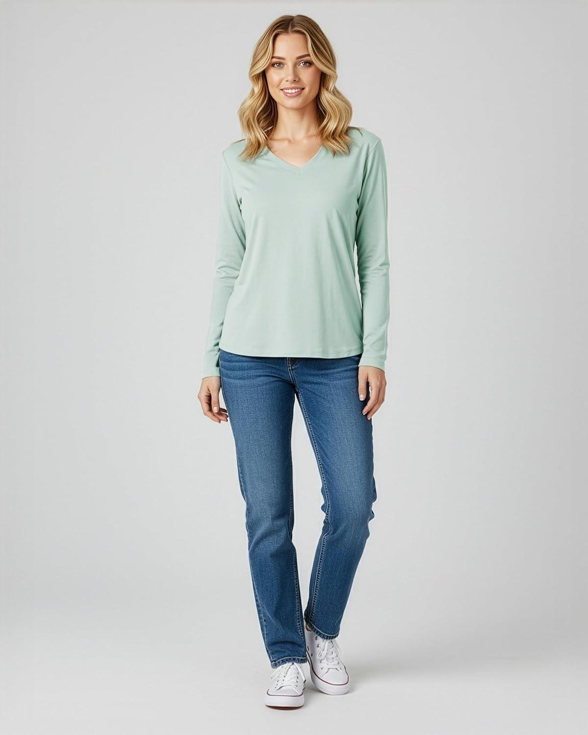 imageReal Essentials 4 Pack Womens VNeck Cotton LongSleeve TShirt Available in Plus SizeSet 7