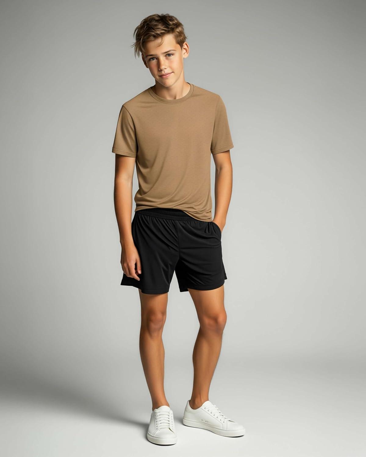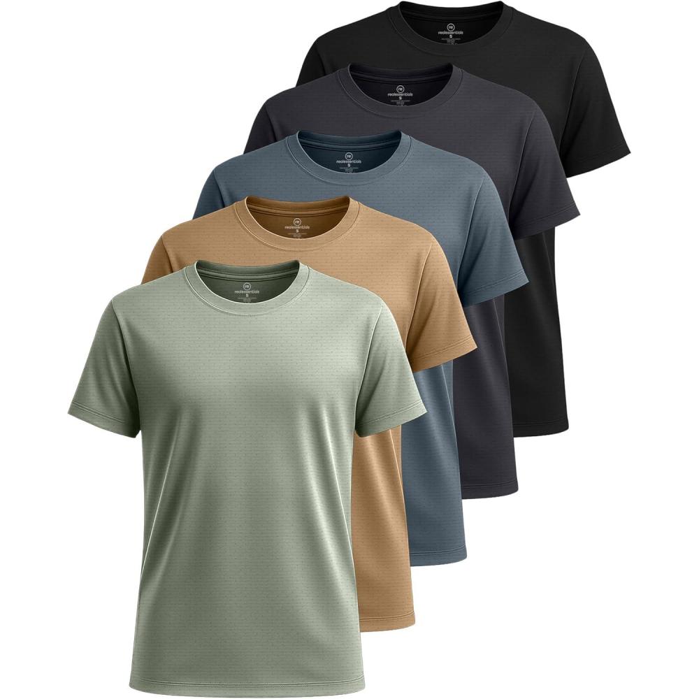 Real Essentials 5 Pack: Boys Breeze Tech Dry-Fit Short Sleeve Athletic T Shirt Active Workout Gym Kids Youth(Set 6)
