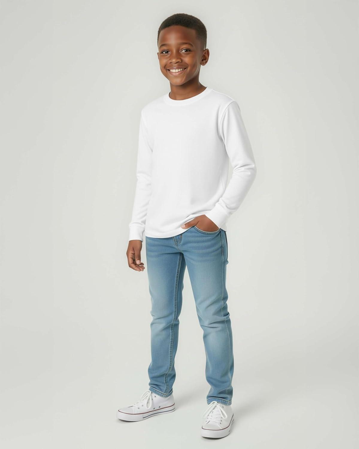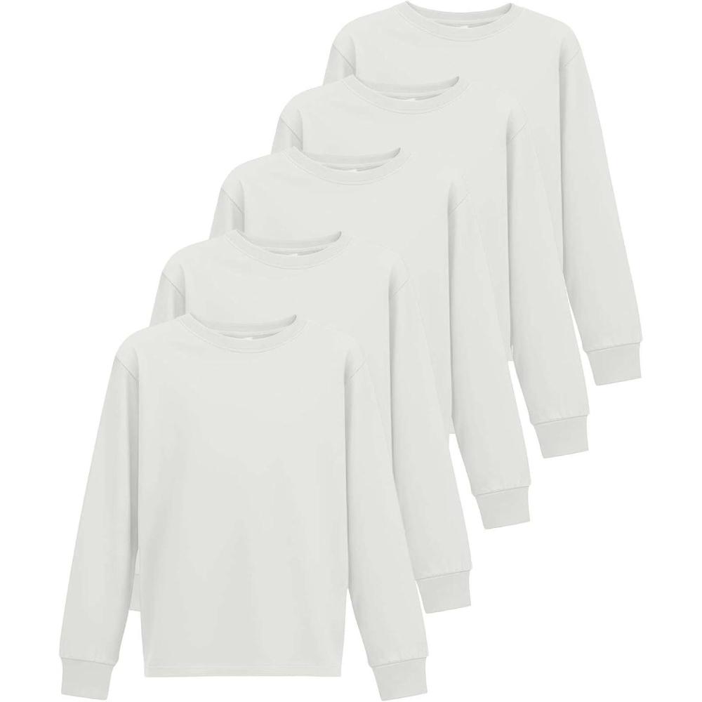 Keep your boy comfortable and ready for anything with the Real Essentials 4 Pack: Boys' Cotton Jersey Long Sleeve T-Shirts. Made from soft, breathable cotton jersey, these shirts deliver the perfect blend of comfort, durability, and style. Whether worn for school, layering under a sweatshirt, or just hanging out, they’re an everyday essential. The classic crewneck design pairs effortlessly with jeans, pants, or shorts, while the durable cotton fabric stands up to daily wear and frequent washing. With four shirts in each set — available in classic colors like white, black, red, gray, navy, and green — it’s easy to mix, match, and stock up on quality basics. Perfect for school uniforms, layering, or casual wear, these long sleeve tees give boys the comfort they need and the clean, simple style parents love. Available in boys’ sizes 6–16 for the ideal everyday fit.