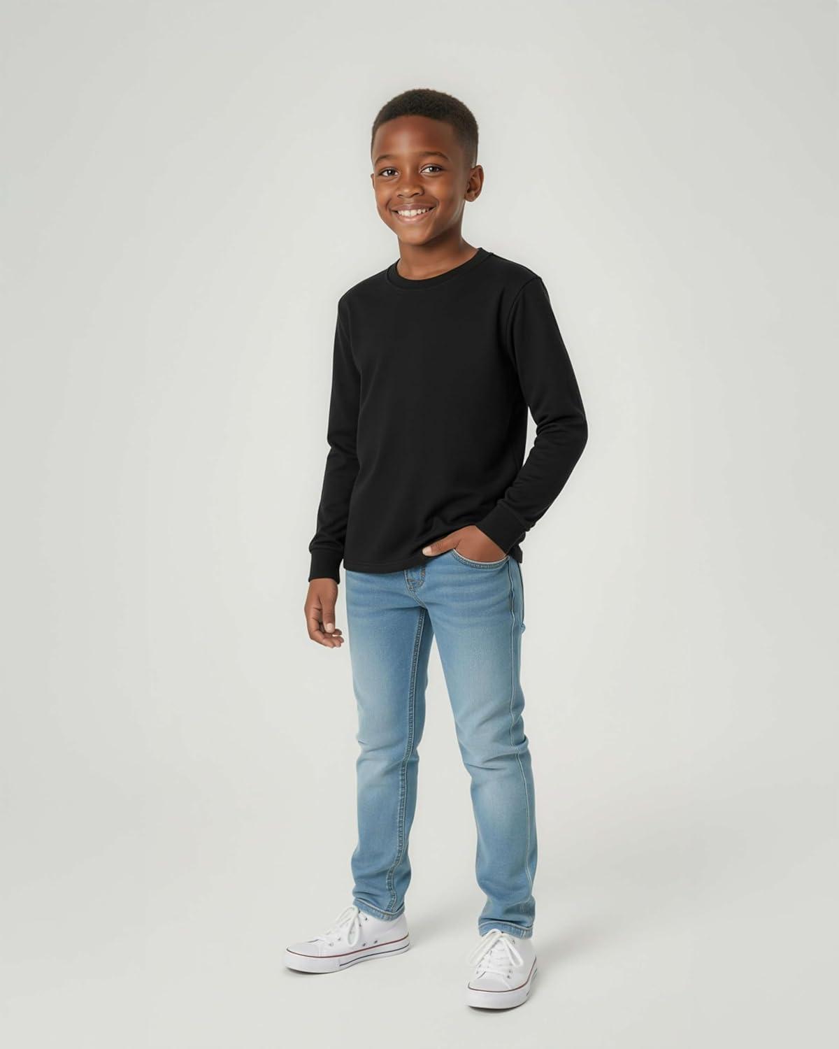 Keep your boy comfortable and ready for anything with the Real Essentials 4 Pack: Boys' Cotton Jersey Long Sleeve T-Shirts. Made from soft, breathable cotton jersey, these shirts deliver the perfect blend of comfort, durability, and style. Whether worn for school, layering under a sweatshirt, or just hanging out, they’re an everyday essential. The classic crewneck design pairs effortlessly with jeans, pants, or shorts, while the durable cotton fabric stands up to daily wear and frequent washing. With four shirts in each set — available in classic colors like white, black, red, gray, navy, and green — it’s easy to mix, match, and stock up on quality basics. Perfect for school uniforms, layering, or casual wear, these long sleeve tees give boys the comfort they need and the clean, simple style parents love. Available in boys’ sizes 6–16 for the ideal everyday fit.