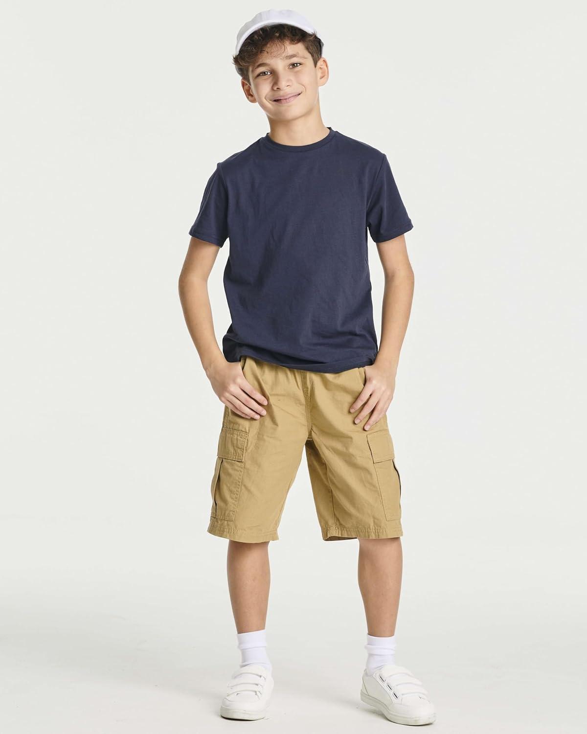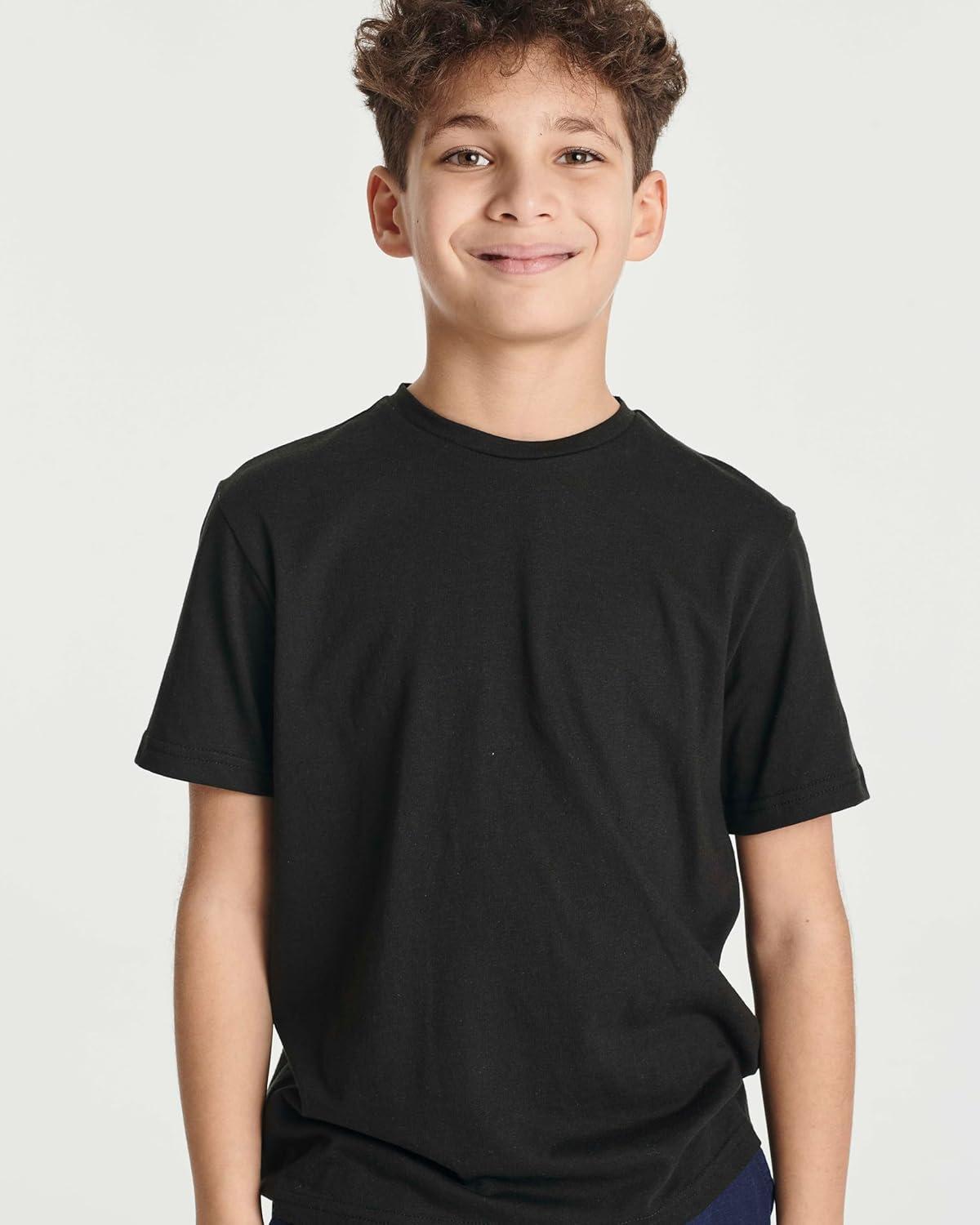 Real Essentials 5 Pack: Boys’ Cotton Short Sleeve Crew Neck T-Shirts – Casual, Athletic Outdoor Shirts for Teens (Ages 4-18)(Set 4)