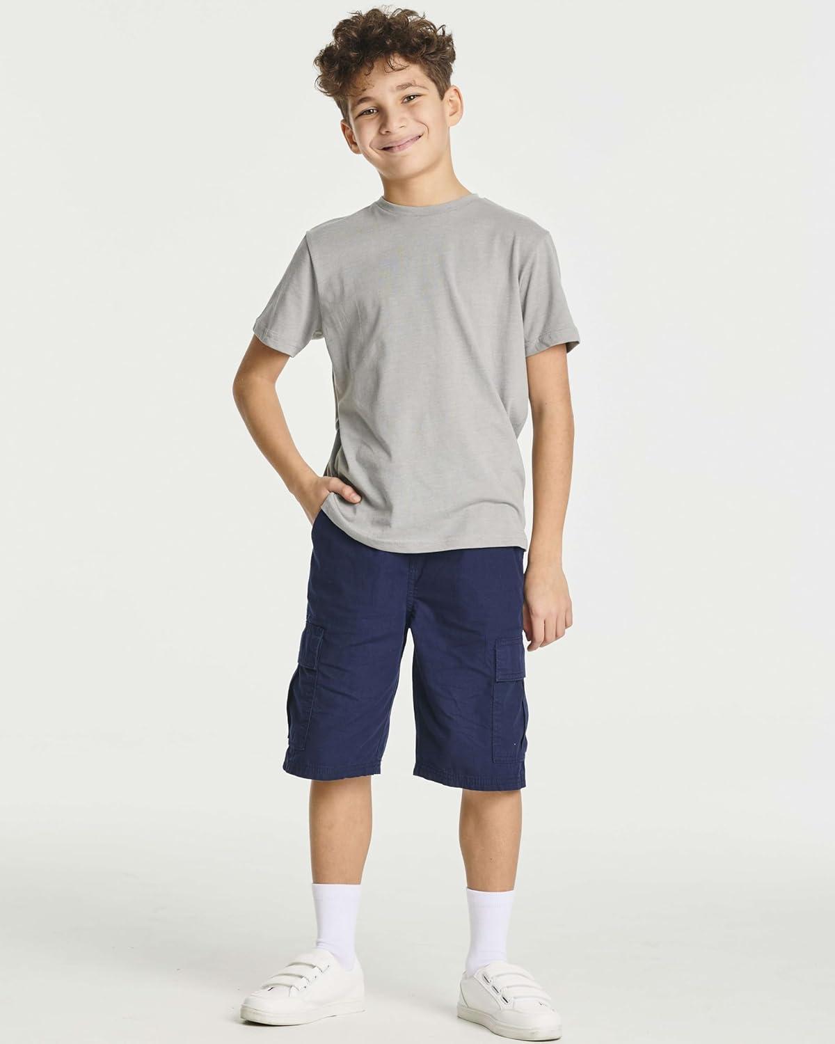 Real Essentials 5 Pack: Boys’ Cotton Short Sleeve Crew Neck T-Shirts – Casual, Athletic Outdoor Shirts for Teens (Ages 4-18)(Set 7)