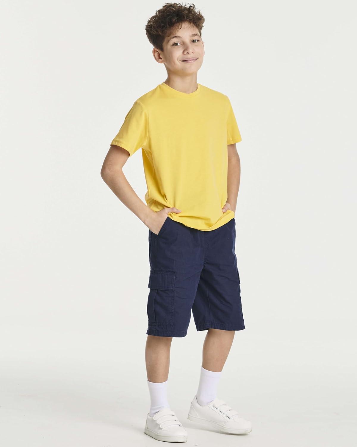 Real Essentials 5 Pack: Boys’ Cotton Short Sleeve Crew Neck T-Shirts – Casual, Athletic Outdoor Shirts for Teens (Ages 4-18)(Set 7)