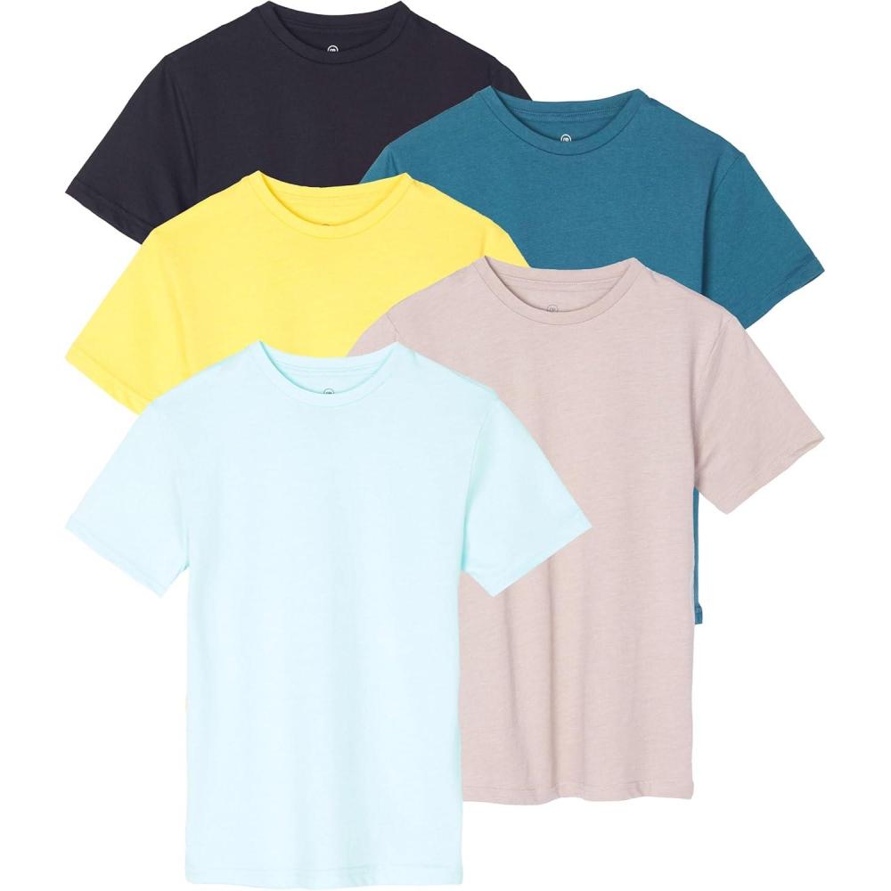 Real Essentials 5 Pack: Boys’ Cotton Short Sleeve Crew Neck T-Shirts – Casual, Athletic Outdoor Shirts for Teens (Ages 4-18)(Set 6)