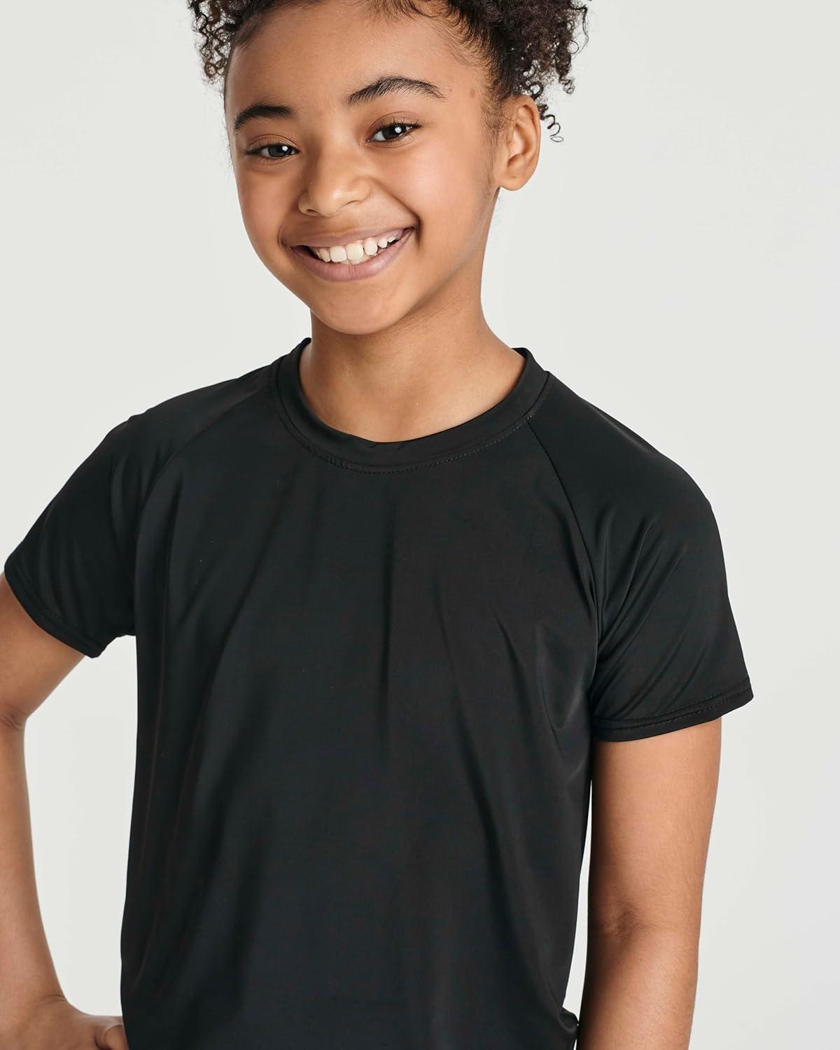 Real Essentials 5 Pack: Girls’ Rash Guard Swim Shirts – Short Sleeve UPF Sun Protection Tops (Ages 4-16)(Set 1)