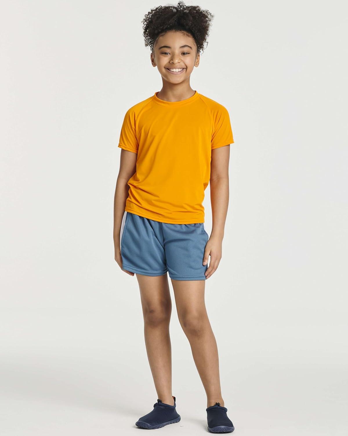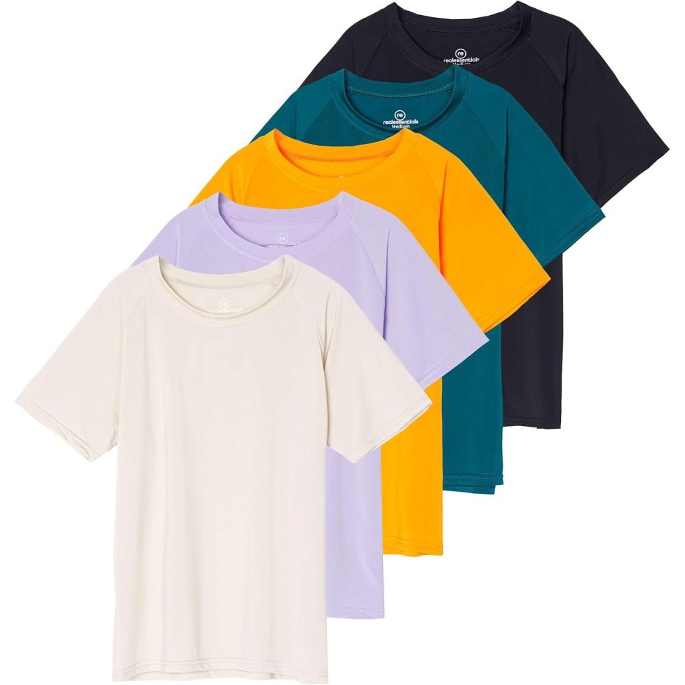 Real Essentials 5 Pack: Girls’ Rash Guard Swim Shirts – Short Sleeve UPF Sun Protection Tops (Ages 4-16)(Set 2)