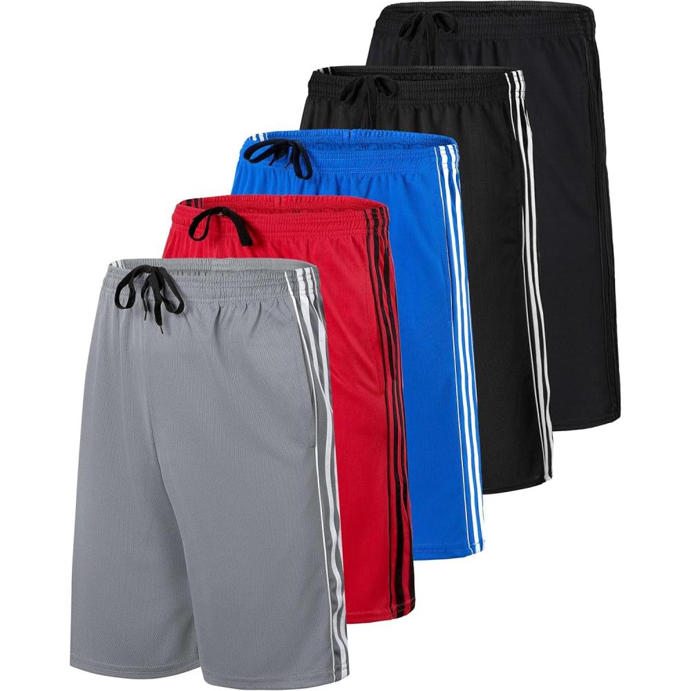 Real Essentials 5 Pack: Men’s 9″ Mesh Shorts – Athletic Gym, Workout, Basketball, Running, Casual Lounge Activewear Pockets(Set a)