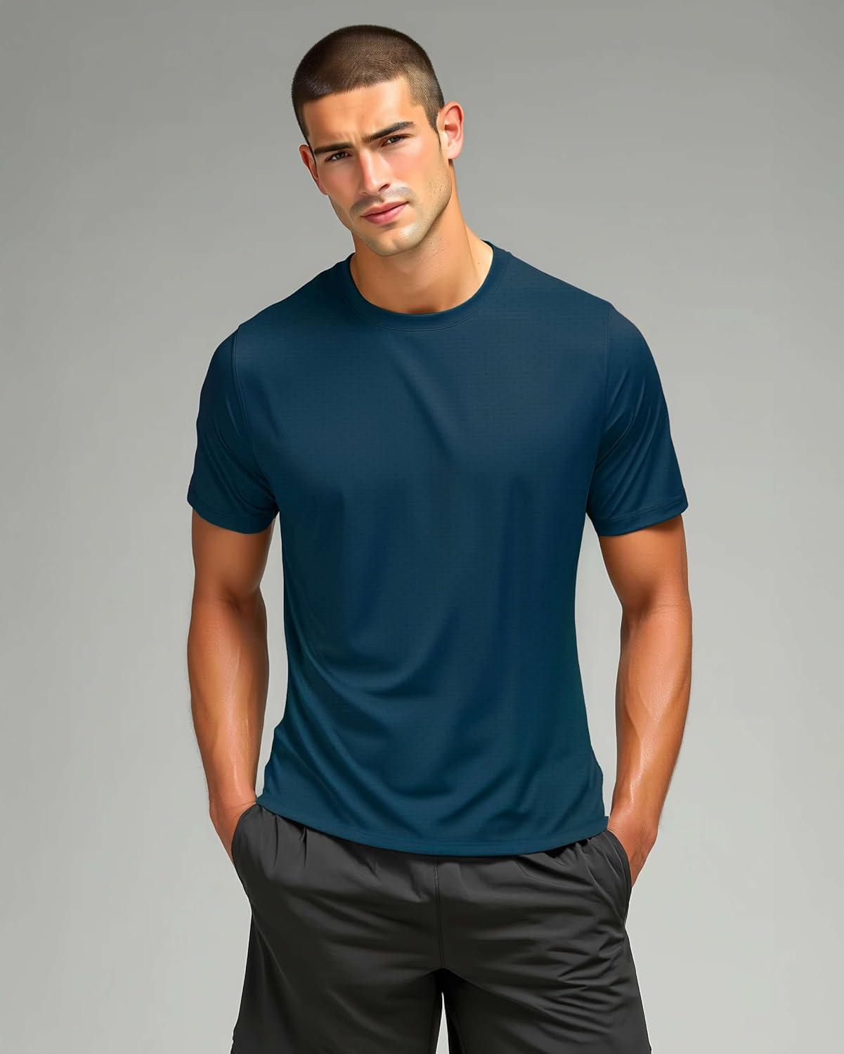 imageReal Essentials 5 Pack Mens Breeze Tech Crew Neck Workout TShirts MoistureWicking Athletic Gym Shirts Big and TallSet 8