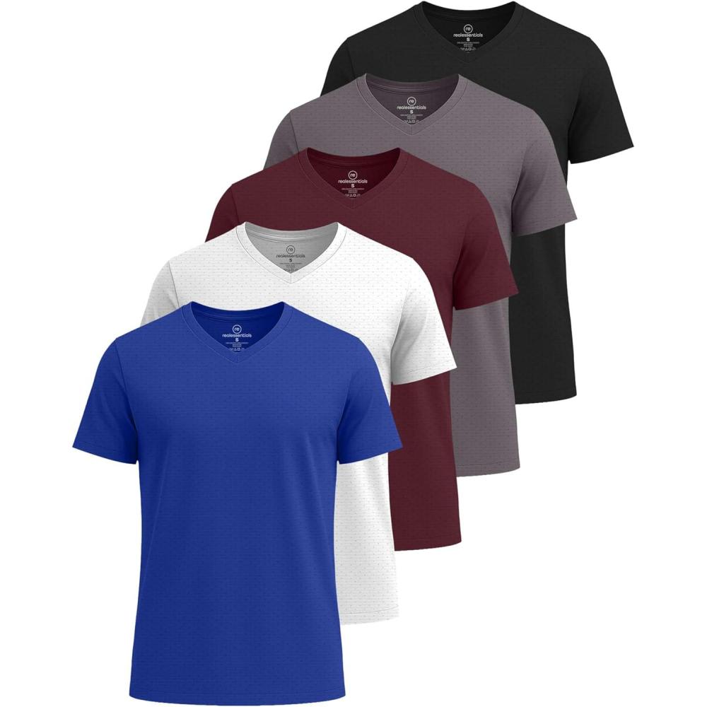 Real Essentials 5 Pack: Men’s Breeze Tech V-Neck Dry Fit T-Shirts Moisture Wicking Athletic Workout & Gym Shirts (Big &Tall)(Set 7)