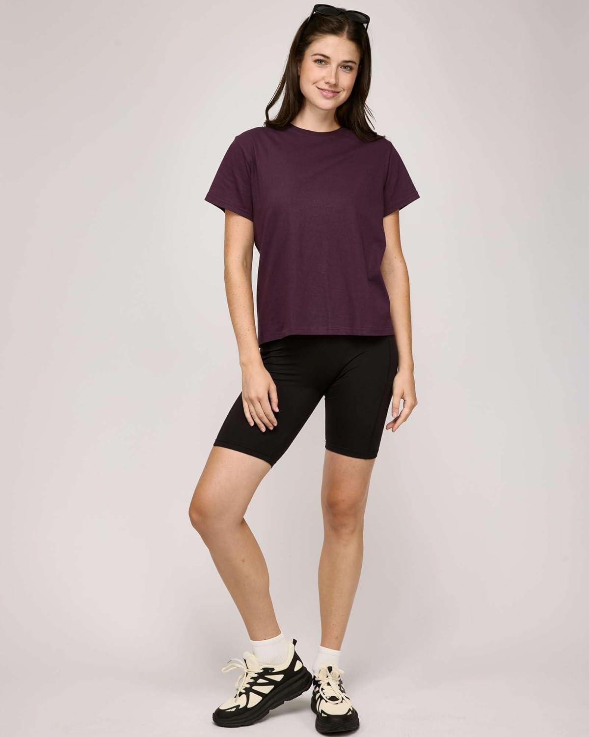imageReal Essentials 5 Pack Womens 100 Cotton Relaxed Fit Short Sleeve TShirts Fashion Trendy Tees Available in Plus SizeSet 4