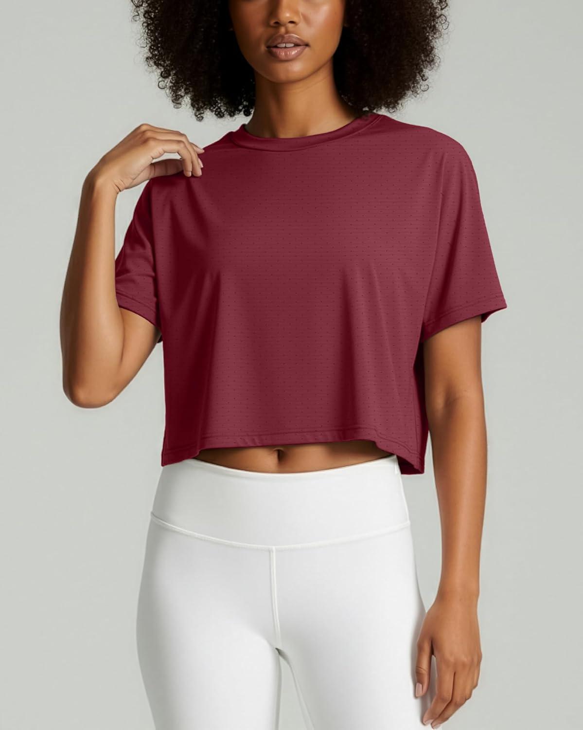 Real Essentials 5 Pack: Women’s Dry-Fit Breeze Tech Crop Tops – Short Sleeve Athletic Workout, Yoga Tees (Available in Plus)(Set 5)