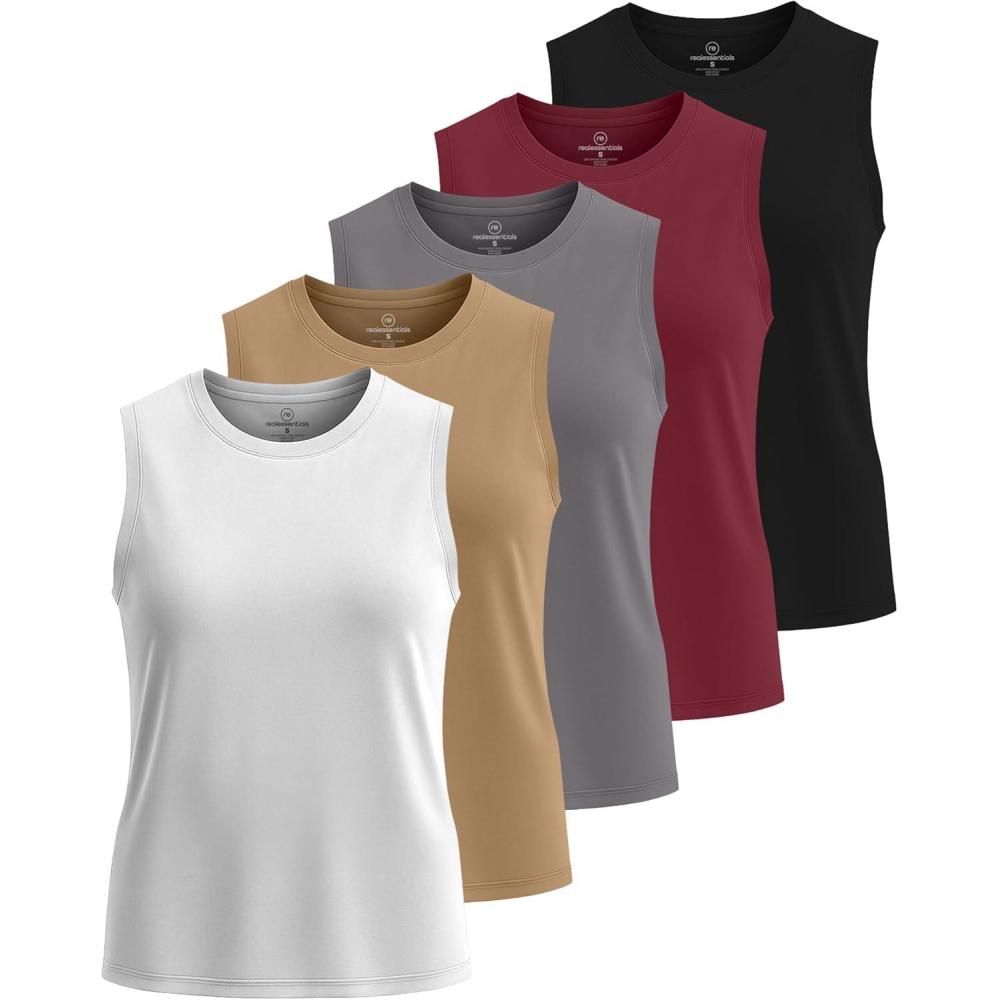 Real Essentials 5 Pack: Women’s Dry-Fit Tank Top – Racerback Sleeveless T-Shirt Athletic Workout Gym Shirt (Plus Available)(Set 7)