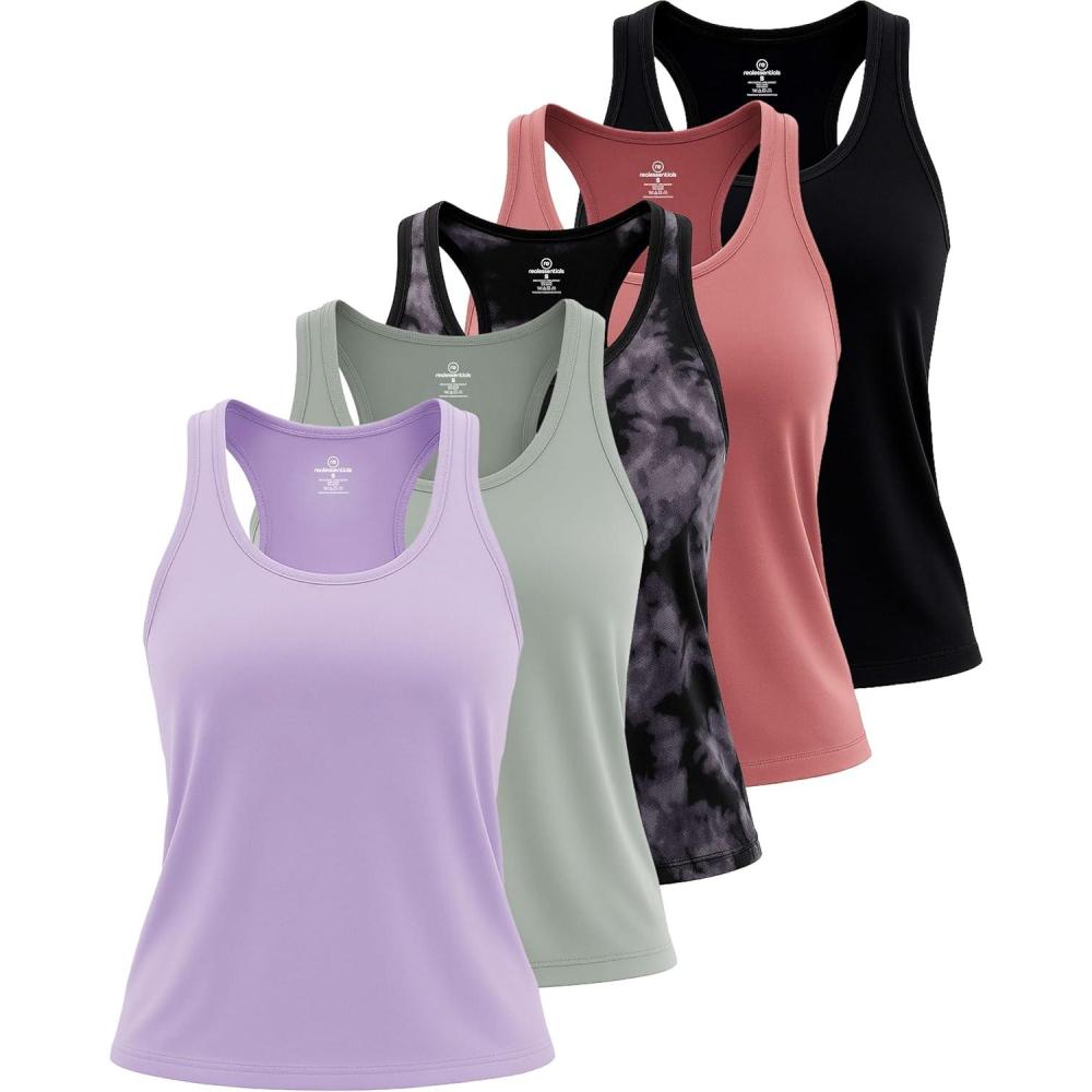 Real Essentials 5 Pack: Women’s Racerback Tank Top Dry-Fit Athletic Performance Yoga Activewear (Available in Plus Size)(Set 2)