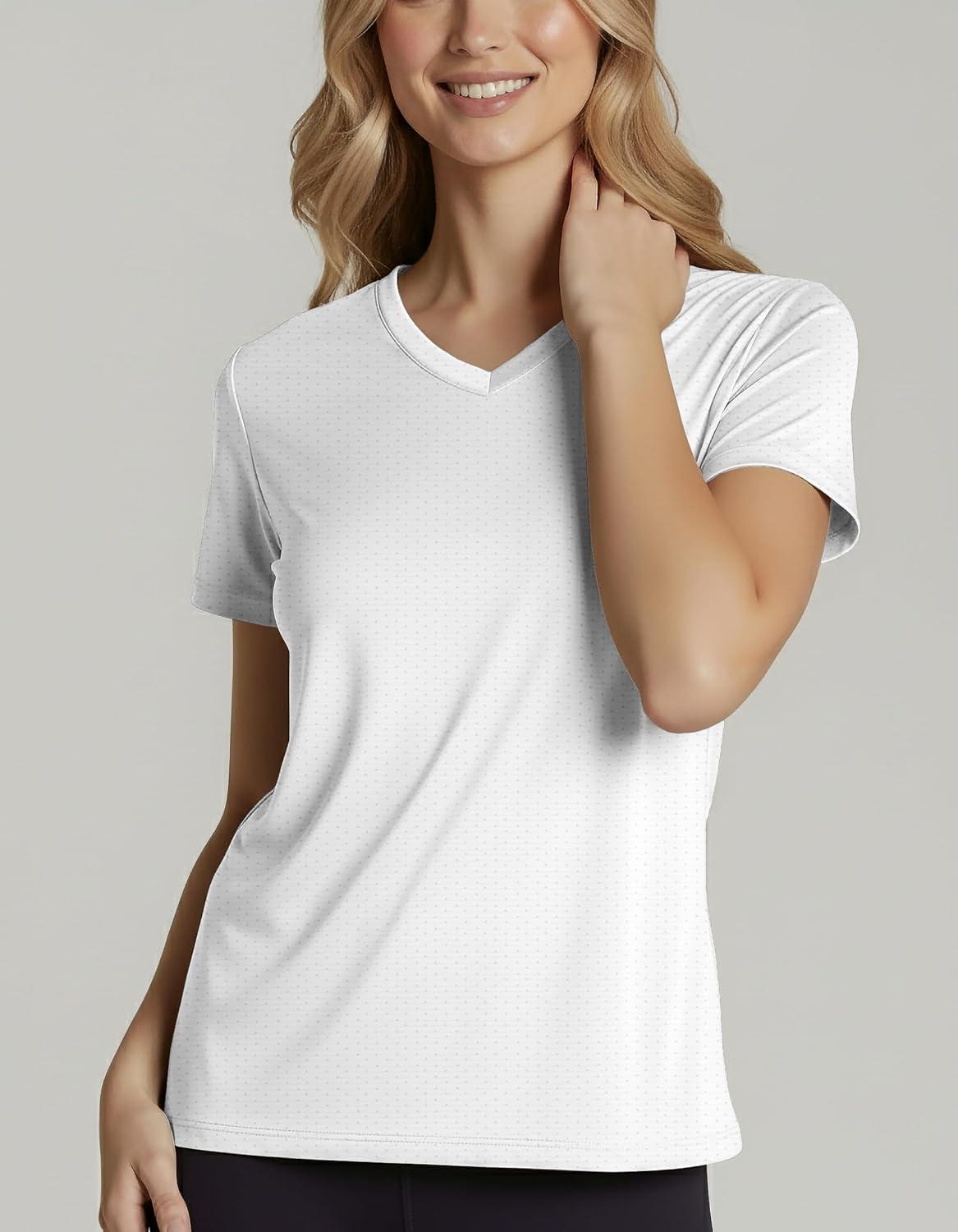 imageReal Essentials 5 Pack Womens Short Sleeve Breeze Tech VNeck T Shirt Workout Top Wicking Dry Fit Athletic Tee PlusSet 8
