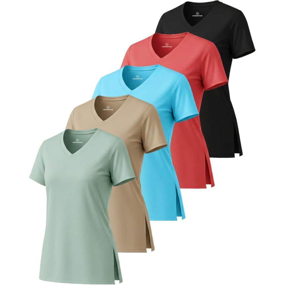 imageReal Essentials 5 Pack Womens Short Sleeve Split Hem VNeck TShirts Athletic Tops Gym Workout Yoga Activewear PlusSet 8