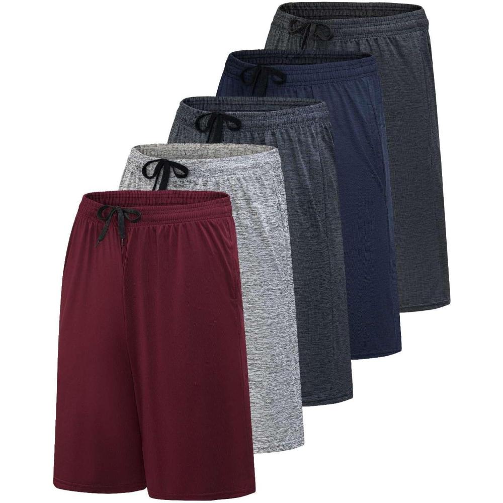 Real Essentials Men’s 5 Pack: 9″ Dry-Fit Shorts – Athletic Gym, Workout, Basketball, Running, Casual Lounge Active Pockets(Set E)